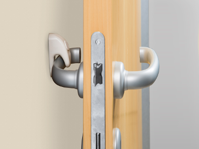 La forma a “goccia” e il materiale elastico rendono questo sistema resistente a urti e ottimale per bloccare la maniglia delle porte.