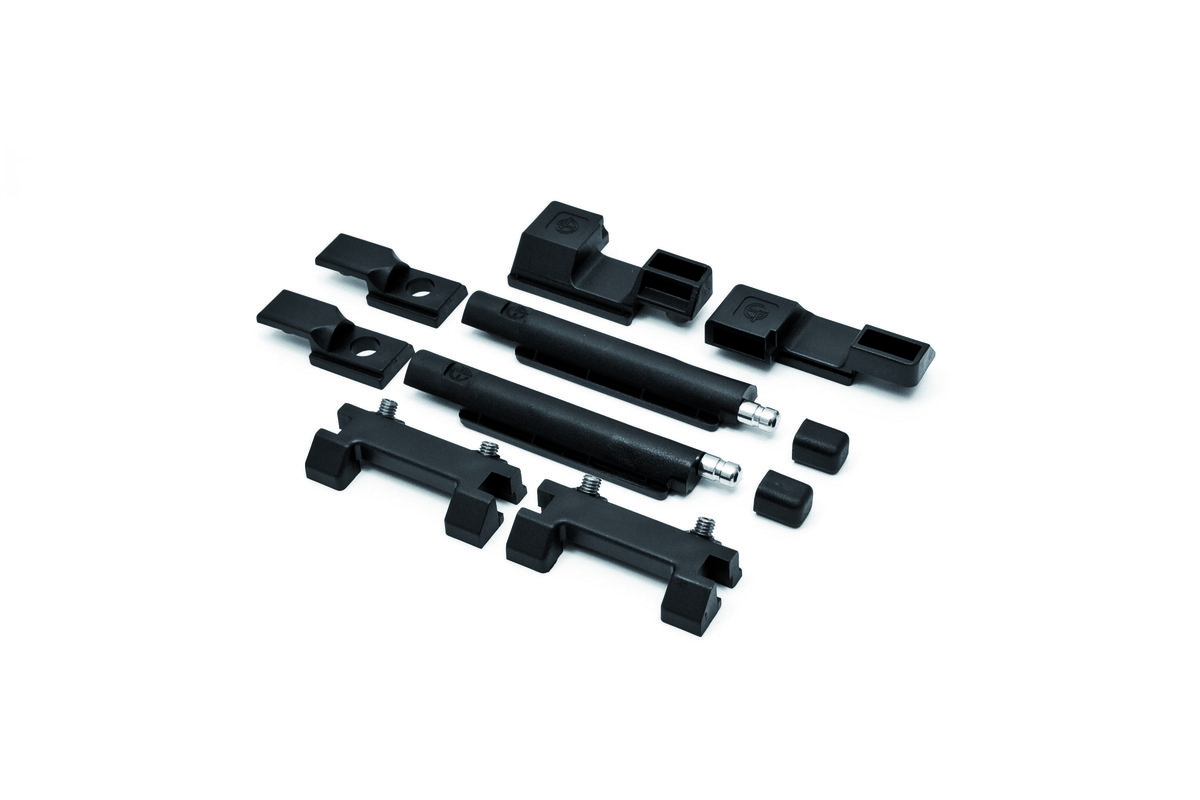 Kit completi di accessori idonei per il bloccaggio di un'anta in un sistema realizzato con profili camera C.E.(larghezza cava 20mm) o con profili camera R40 (larghezza cava 18mm). I kit sono prodotti sia nelle versioni per l'anta movimentata dalla maniglia cremonese, sia per la seconda anta. l primi comprendono, oltre ai puntali dei catenacci, anche gli incontri e i blocchetti per cremonese. Gli incontri sono quei particolari in cui si innestano i perni dei puntali catenacci per determinare il blocco delle ante mentre i blocchetti, servono invece per collegare la maniglia cremonese ai terminali asta tramite le astine di movimentazione (non fornite nel kit). Nelle versioni per la seconda anta, denominata anta fissa, i kit comprendono anche le aste di manovra da collegare ai puntali dei catenacci per permettere l'apertura e chiusura manuale.