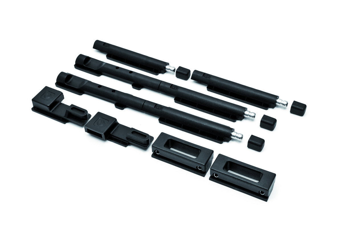 Kit completo di accessori idonei per il bloccaggio delle due ante in un sistema con profili camera C.E.(larghezza cava 20mm). Il kit comprende, oltre ai catenacci, anche gli incontri e i blocchetti per cremonese. I primi sono quei particolari in cui si innestano i perni dei catenacci per determinare il blocco delle ante mentre i blocchetti, servono per collegare la maniglia cremonese ai terminali asta tramite le astine di movimentazione (non fornite nel kit).