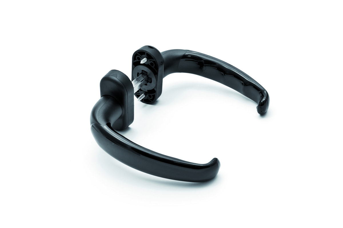 Maniglie per applicazioni su porte in alluminio e pvc, sono realizzate in resina nelle versioni lucide ed opache.